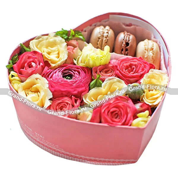 Коробочка любви - коробка в виде сердца с розами и макарунс